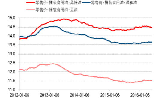豆油、菜籽油、玉米油、调和油等食用油价格在2013年触顶后经过两年有余的回落,从2015年年底开始出现回升迹象。豆油主力期货合约收盘价和结算价已突破6200元/吨,创2015年以来的新高。在以豆油为代表的大宗油脂价格回升的带动下,玉米油等小油种的价格也有望开启上行周期,且弹性可能会更大。