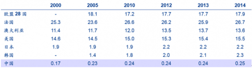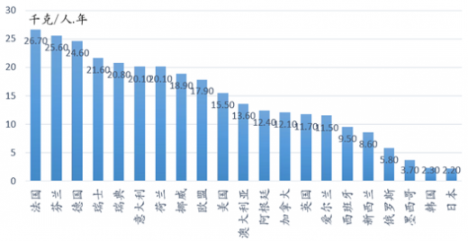 国别人均奶酪消费情况,欧美国家领先-2014