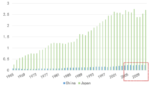 中国奶酪行业相当于日本70年代起飞阶段(人均消费,kg)