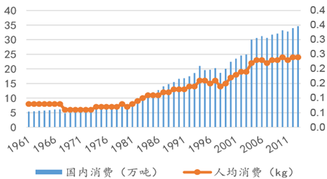 中国奶酪总消费和人均:2000年后快速增长