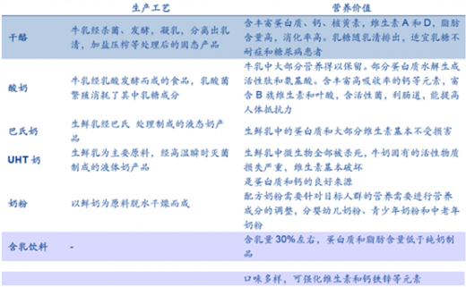 不同乳品工艺和营养价值比较