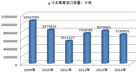 2009-2014年中国冷冻草莓进口数量