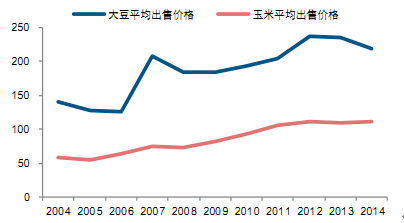 大豆玉米的价格比价从 09年超过成本比价且差距逐渐扩大