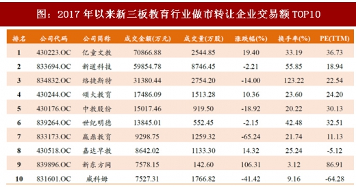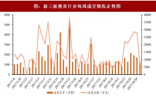 总体而言,2017年以来教育行业的流动性受制于整体新三板大市场的影响,流动性不佳的困境依旧存在。当前新三板仍是一个存量资金博弈的市场,流动性二八分化明显,高度集中个别股票。