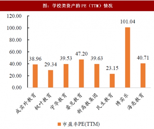 发展态势越发确定,海内外资本涌入使教育企业在海外资本市场表现突出,估值与业绩双重驱动充分演绎“戴维斯双击”效应。今年以来,k12课外培训双龙头新东方、好未来的市盈率分别从2015年最低的14、27倍pe提高到目前48、107倍pe,总市值分别达140.0、145.1亿美元(截至2017年11月16日)。而受制于政策因素,扎堆海外上市的学校类资产(博实乐教育、海亮教育、新高教集团、民生教育、宇华教育、睿见教育、枫叶教育、成实外教育)业绩表现良好,在二级市场中备受追捧。截至2017年11月16日,美股市场中涨幅最大的海亮教育今年以来上涨433.61%,而港股市场中涨幅最大的睿见教育上涨幅度也达到了174.99%,8家学校类标的平均涨幅达113.06%。