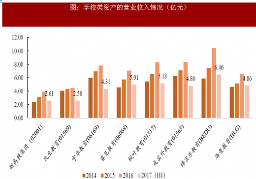 2017年国内优秀教育企业海外上市进程明显提速。美股方面,博实乐(bedu)、红黄蓝(ryb)、瑞思学科英语(redu)三家教育企业在2017年成功登陆美股,至今美股中概教育股已达10家,涵盖职教、k12、幼教等多个细分方向,加上近期申报ipo的上海四季,教育中概股集群将进一步强化。港股方面,睿见教育(06068.hk)、宇华教育(06169.hk)、民生教育(1569.hk)、新高教集团(2001.hk)等学校类资产也于2017年内成功登陆港股,加之2017年中提交申报材料的中教控股、新华教育,港股市场成为优质学校类资产的聚集地,集群效应进一步凸显。