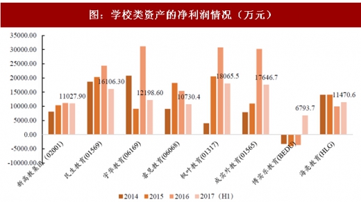从营收数据来看,8家学校类标的2017h1上半年业绩表现良好,整体营收实现35.80亿,同比增长24.95%(整体法)。其中,8家公司营收均实现同比增长,增长最快的睿见教育2017h1营收实现5.01亿元,同比增长40.39%。
