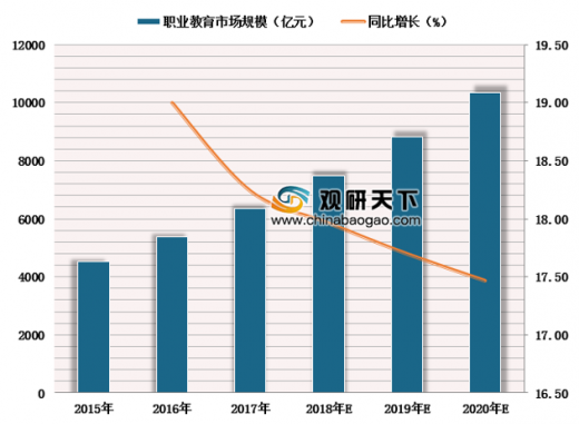近年来我国高校毕业生人数逐渐增长及热门岗位对人才的需求,市场竞争激烈,职业教育行业将迎来发展拐点。预计到2020年,职业教育市场规模将达到万亿元以上。