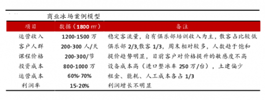 散客收入受季节、时间段等波动较大,总体增长不明显。而俱乐部培训方面,近 3年来参与培训的学员一直保持在 30%左右的快速增长。单价的提升和培训收入的增长带动了冰场总收入的快速增长并保持相对稳定。不过随着培训人数的增长导致专场培训的包场时间逐步增多,考虑到场地的运营时间和容量的限制,部分冰场的收入已经趋于饱和。运营成本方面,租金和人工等成本也有一定程度的增长,导致实际利润的增长并不明显。