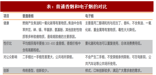 卷烟价格不断升高,电子烟性价比优势逐渐凸显。电子烟一套体验级设备大概200-300元,较高级的则在300元或以上,考虑到设备折旧和更新换代的速度,一套大概可以用2-3个月。同时消费者一个月还需3瓶均价50元左右的烟油(30ml),2-3个均价20元的雾化芯替换,单月支出大概在300元左右。卷烟的话,假设烟民一天抽一包烟,以15元/包计算,一个月就需450元。在卷烟价格不断提升的背景下,电子烟的性价比优势将会越来越突出。
