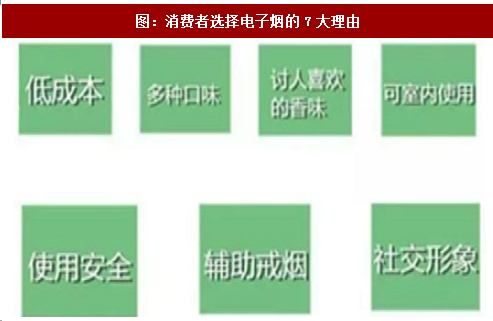 vape文化指的是年轻人认为抽电子烟时吞云吐雾的形象十分时尚酷炫,从而争相吸食电子烟的一种文化,除戒烟需求外,消费者吸食电子烟的其他理由还有:低成本、多种口味、使用安全、可室内使用、讨人喜欢的香味和社交形象。