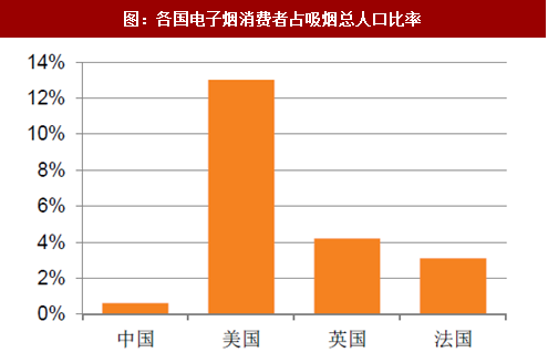 美国电子烟渗透率与电子烟销售渠道发达密不可分。至2016年底,美国约有900万烟民吸食电子烟,占其吸烟总人口的13%左右,相比较来说,英国电子烟消费者约占其吸烟总人口的4.2%,法国3.1%,中国仅为0.6%。美国的电子烟销售渠道非常发达,主要有三种: