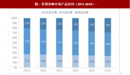 图:美国淡啤市场产品结构(2011-2016)