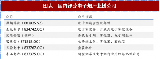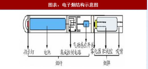 电子烟主要部件包括供能系统、雾化器、烟液等。