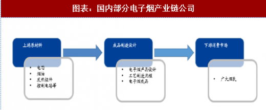 电子烟产业链上游市场主要涉及电芯、烟油、发热组件、控制电路等产业,中游成品制造设计主要涉及电子烟产品设计、工艺制造流程、电子烟成品,而下游需求市场则以有戒烟需求的烟民为主。欧美日益强劲的需求、国内政策的管制使得电子烟产品呈现制造中心在中国、需求中心在欧美的全球产业链格局。目前国内大部分的电子烟生产商是采用 oem、odm 的商业模式。