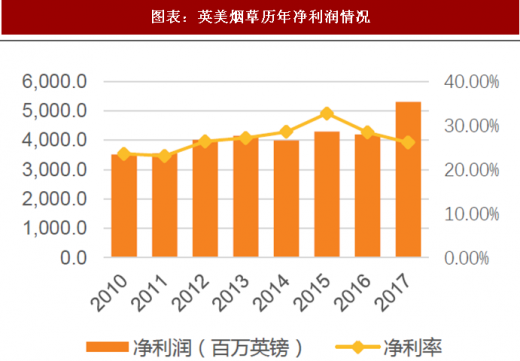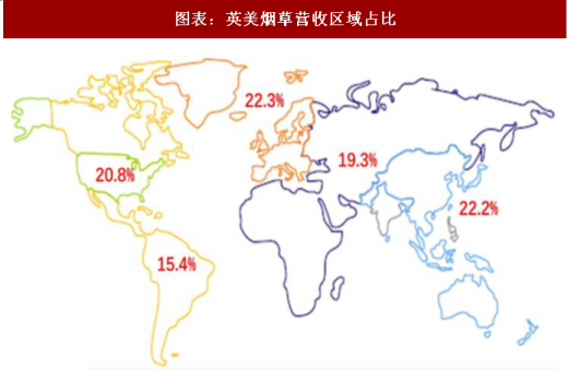 2017 年公司营业收入达 202.92 亿英镑,同比增长 37.6%,主要原因在于并购雷诺公司、新 型烟草产品扩张等。根据欧睿数据,英美烟草在全球(除中国外)烟草市场格局占比达 20%, 仅次于菲莫国际。