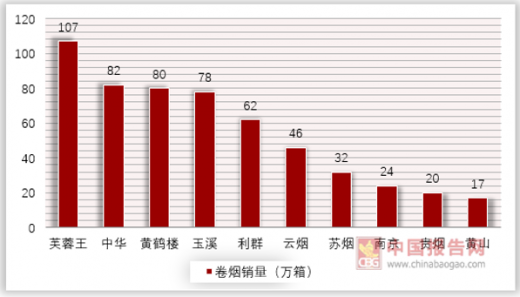 2018年上半年我国一类烟中,芙蓉王销量排名第一,也是唯一销量超过100万箱的品类。其次是中华、黄鹤楼、玉溪等。具体如下: