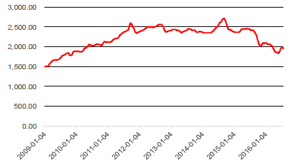 2016年大麦种植面积及产量双双下降,同比2015年下降幅度均超过20个百分点。下游工业需求相对稳定,饲料消费出现下滑,拖累整体消费量降至600万吨左右。随着国内需求下滑,进口量大幅下降。由于供应降幅大于需求降幅,本产季国内大麦期末库存将有所下降。价格方面,本年度由于供应的减少而出现小幅的价格上涨。