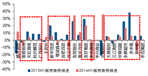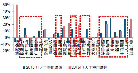从具体企业来看,百货行业大部分企业租金费用、折旧摊销费用增速放缓,人工费用增速加快;超市行业大部分企业人工费用、租金费用、折旧摊销费增速均有所放缓。