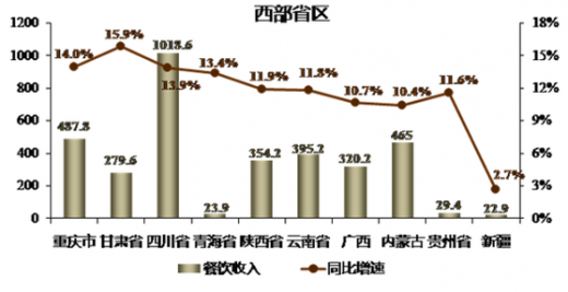 此外,在当地政策的大力支持下,部分省区餐饮市场发展活跃。云南省一直致力于弘扬当地民族餐饮文化、推动滇菜品牌走向全国,2015年12月云南省政府发布《“舌尖上的云南”行动计划》,力争在五年内,全省餐饮业总收入达2000亿元以上;山西省调整产业发展规划,将餐饮行业作为新的经济增长点,并取得了一定的效果,2016年上半年山西省餐饮收入同比增长6.5%,增速比上年同期提升2.3个百分点,结束了自2013年“中央八项规定”以来增速持续下跌的颓势;为了进一步加快川菜产业发展,2016年6月成都市政府公布了《关于进一步加快成都市川菜产业发展的实施意见》,实行诸多扶持奖励政策,有利于振兴川菜、弘扬成都丰富的美食文化,争取到2020年,成都市餐饮零售额突破1000亿元大关。