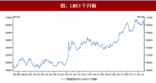 2、铜价将平稳上涨2016年4季度,在中美经济改善,铜需求预期增加的前景下,铜价快速上行,lme3个月铜价从4800美元/吨左右迅速上升到5800美元/吨附近后开始震荡。今年下半年,在中国公布二季度gdp好于市场预期,并且wbms发布了铜供应短缺报告以后,市场炒作热情被再一次引爆,lme3个月铜价从5800美元/吨左右快速上升到6800美元/吨附近,并数次越过7000美元/吨。与此同时,国内铜现货市场的价格走势也与其基本同步,去年4季度长江有色市场铜现货价从38000元/吨拉升到48000元/吨附近后开始震荡,今年下半年,又进一步上升到53000元/吨附近,并多次越过55000元/吨。