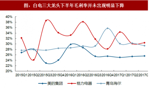 从三季报来看,白电龙头格力、美的以及海尔的毛利率都仅是略有下降,但仍处于正常范围内。