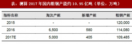 关于老旧高炉复产总量与进度,市场一直存在争议。从现有统计数据来看,自工信部公布2015年全国表内粗钢产能12亿吨之后,历经两年去产能,表内产能减量1.15亿吨,表外地条钢产能全部退出,再加上近两年合计投放产能约985万吨(据新浪网和西本新干线网站统计),意味着截至目前,国内钢铁行业总产能约10.95亿吨。