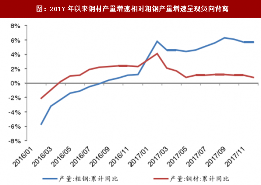 地条钢”出清显著利好于表内合规产能,行业盈利正通过“地条钢”出清过程向合规产能再分配。我们曾在2017年2月28日发布的《如何跟踪与研究钢铁行业:钢铁行业基本面及财务指标跟踪方法与指标构建》中分析认为,“地条钢”整治会形成钢铁供给端迅速、实质性收缩,而这种收缩一般在钢材产量增速相对于粗钢产量增速的负向背离上得以体现。