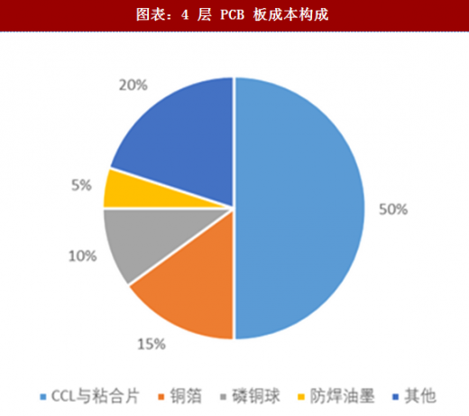 覆铜板(简称 ccl)是以电子级玻璃纤维布为基材,浸以树脂材料,经烘干处理后,制成半固化状态的粘结片,再在单面、双面或多层板面敷上板薄的铜箔,经特殊的热压工艺条件下制成的,是pcb的直接原材料,担负着(pcb)导电、绝缘、支撑三大功能。覆铜板材料占整个 pcb 生产成本的 20%~40%,在所有pcb的物料成本中占比最高。