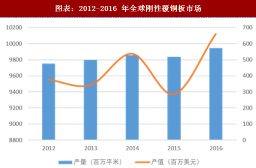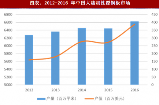 图表:2012-2016 年中国大陆刚性覆铜板市场