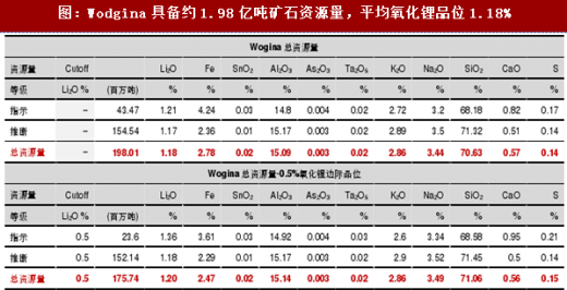 wodgina矿山2018财政年(对应日历年2017下半年至2018上半年)规划销售475万吨原矿。其中2017下半年已产出201.7万吨、实现销售177.2万吨,暗示2018上半年销售目标297.8万吨(实际产量可能受澳洲西北部的天气而扰动)。2017年12月份,wodgina已达到年化500万湿吨的生产水平;2019财年(对应日历年2018下半年至2019上半年)可根据市场需求进一步扩能至年产600万湿吨。