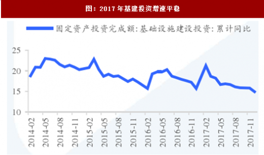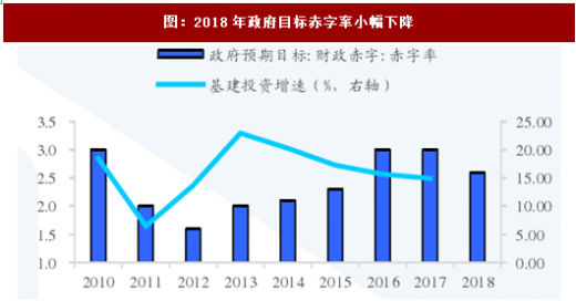 预期2018年基建投资增速小幅下滑,但不会出现崩塌。从资金来源上看,基建呈现边际收紧的走势。但2018年我国保持gdp平稳增长目标并未移除,虽然2018年财政赤字率由3%下调为2.6%,但地方政府专项债券的量却由8000亿上升为1.35万亿。