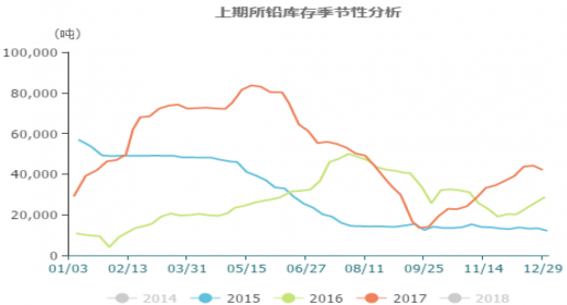 国际市场的铅价在10月之前基本与国内铅价同步,自2月中下旬铅价下跌至6月初的2100美元/吨附近开始反弹,但是从4季度开始,随着lme铅库存在近几年的较低水平上持续走低至14万吨左右,lme3个月铅价开始持续攀升,并于年底达到2500美元/吨附近,这与2017年全球精铅供应存在缺口不无关系。