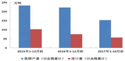 但是,国内近几年铅精矿严重供应不足,进口的铅精矿的量约占到国内产量的30%-40%,虽然进口窗口持续打开,但是总的进口量有限。随着国家商务部根据联合国安理会2371号决议新增的对朝鲜禁运部分产品包含铅精矿,自8月15日起开始实施,9月份自朝鲜的铅矿砂的进口量大量减少。中国海关总署公布的数据显示,自联合国对朝鲜的最新制裁生效以来,中国从该国进口的铁矿石和铅精矿降至六年多来最低。而近几年中国对朝鲜铅矿砂及精矿的进口依赖度在逐步增强,因而失去第二大矿石及精矿供应来源,加剧了铅精矿的供应紧张的趋势。