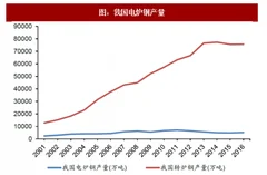 2004以来维持在4000-7000万吨,高炉-转炉炼钢快速发展、由2001年的1.28亿吨增长至2014年的7.72亿吨