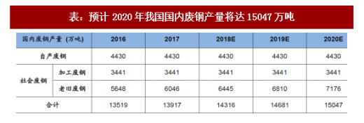 若2017~2020年我国老旧废钢回收率维持2016年水平,预计2020年我国国内废钢产量将达15047万吨