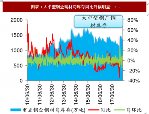 重点钢企钢材库存同比升幅明显。根据中钢协统计,2018年5月中旬重点钢企库存1391.94吨,旬环比上升2.29%,较去年同期上升3.03%。