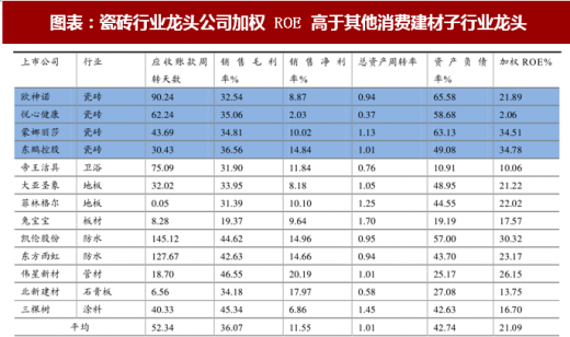我们认为瓷砖是具备高周转、消费属性和较高 roe 潜力的好行业: