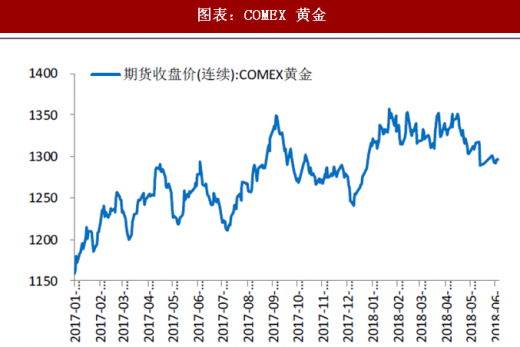 comex 价格本周基本保持稳定,6 月7日期货结算价为1296.5 美元/盎司,较上周小幅下跌,黄金价格略有回落,总体基本保持稳定。
