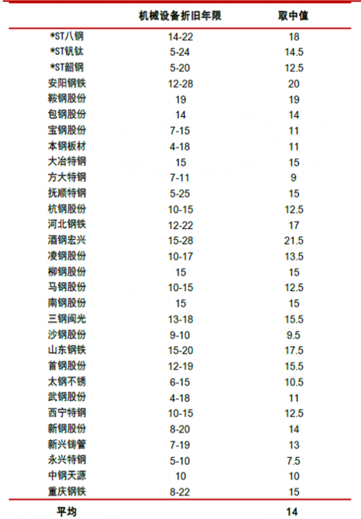 设备折旧到期渐行渐近:根据钢铁冶炼上市公司披露的折旧年限,我们推断整个行业冶炼设备的折旧期为14 年,即理论上2003 年新增的4000 万吨产能应该在2017 年进入报废阶段。2016 年各省市均超额完成去产能目标且大部分所去产能为无效产能,其中必然存在提前报废机械设备以完成任务的钢厂。考虑到当年产能投产在年内的不同时点,我们判断2017 年因折旧期满淘汰产能对应接近于2003 年新增产量即2000 万吨,当然这部分产能的削减只是理论上的测算,即使超期服役产能假设50%,意味着2017 年自然淘汰在产产能1000 万吨,且这部分报废产能呈现逐年增加态势。这样的趋势甚至不是钢铁行业的单体情况,从钢铁角度我们观察到未来几年废钢积蓄量将呈现指数级别的上行,意味着整个体上一轮周期的资本形成已经开始逐步进入自然寿命的末端。上市公司折旧期统计