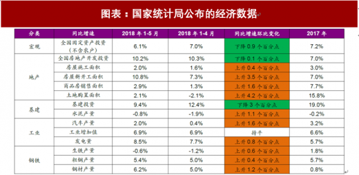 需求方面,2018 年 1-5 月,全国固定资产投资完成额累计同比增长6.1%,相比于 1-4 月下降 0.9 个百分点。