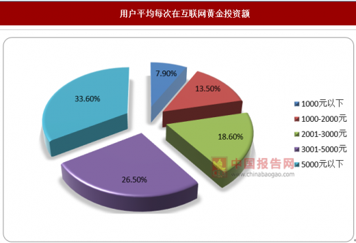 过去一年内,整体互联网黄金用户平均投资互联网黄金4.1次,重度用户平均投资4.8次,投资更加频繁。金额方面,整体用户平均每次在互联网黄金投资金额为3787元,其中重度用户平均每次投资4278元,一般用户平均每次投资3599元。过去一年内,整体用户平均投资互联网黄金15527元,其中重度用户平均投资20534元,一般用户平均投资14036元。