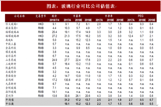 图表:玻璃行业可比公司估值表