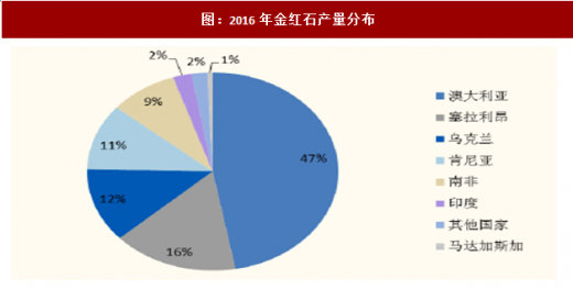 2016年全球共计出产钛矿660万吨,其中钛铁矿586万吨,占比89%,主要出产国为南非、中国、澳大利亚、和莫桑比克;全球出产金红石74.3万吨,主要出产国为澳大利亚、塞拉利昂、乌克兰和肯尼亚。