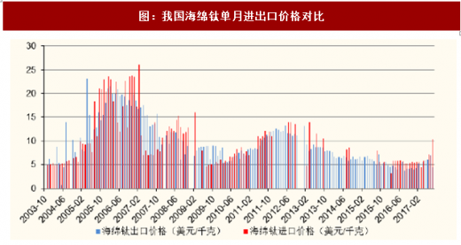 航空航天级海绵钛的纯度相对较高、粒度相对较小,一般而言,其价格也比其他级别海绵钛高10%-20%。我国的海绵钛出口价格往往低于进口价格,说明进口海绵钛中高端海绵钛比例高于出口,印证国内高品质海绵钛产能仍然不足。国内“90”级海绵钛产量占生产总量的40%,“95”级海绵钛占比更小,为8%-10%;而在日本和俄罗斯,“90”级海绵钛所占比例是70%,而“95”级则可达30%-40%。