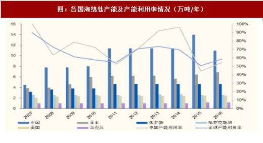 图:各国海绵钛产能及产能利用率情况(万吨/年)