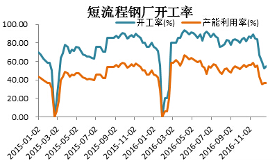 2016年,国内废钢价格呈现出震荡上涨,坚挺运行的格局。受长流程钢厂废钢库存持续较低,而中频炉钢厂11月份之前开工率较高影响,废钢需求支撑较强,价格持续坚挺运行。截止到2016年11月底,69家短流程钢厂平均产能利用率为50.68%,较去年同期高5.87%,按照全国在产产能1.5亿吨测算,中频炉废钢需求量较去年同期增加约1000万吨左右,对废钢价格形成支撑。