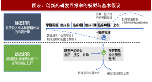 我们认为根据我们提出的创新药周期理论可以从本质上回答欧美创新药企研发 irr持续走低的原因,即原有治疗心脑血管大病种的创新药已经过了专利期,新的大病种癌症、阿兹海默等还未被攻克,在研新药只能针对市场空间较小的小病种、孤儿药,所以预测峰值销售额持续降低,而研发成本并没有同比例降低,反应到 irr 上面就是投资回报持续走低。