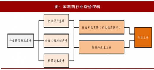 此外,上游原材料行业也因环保影响出现产能受限价格上涨的局面。这两个原因是导致原料药价格上涨的主要因素。