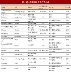 聚乙事醇是一种无活性的亯水性化合物,聚乙事醇化就是将聚乙事醇通过生物技术安装到具有活性的蛋白质分子之上,提高分子量降低血浆和肾脏清除率。聚乙事醇可形成良好的遮蔽作用,使蛋白质不易受到各种蛋白酶的攻击,降解速率明显降低;分子量达到或超出肾小球滤过作用的阈值时可以逃避肾小球滤过作用,降低肾脏清除率。同时聚乙事醇具有空间位阻,将蛋白质表面的抗原决定簇掩盖起来,降低免疫源性。其缺点在于聚乙事醇也可能遮蔽蛋白质分子的功能区域,降低其活性;此外,有研究表明peg成分与肾小管上皮细胞空心化有兲,存在潜在风险;小分子peg有肾脏毒性,大分子peg在体内降解机制不明。
